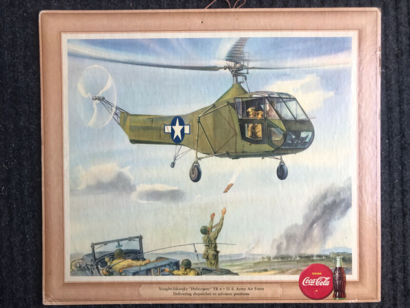 Title (ebay affiliate link): Coca Cola Vintage 1943 World War II Airplane Cardboard Hanger Vought Helicopter