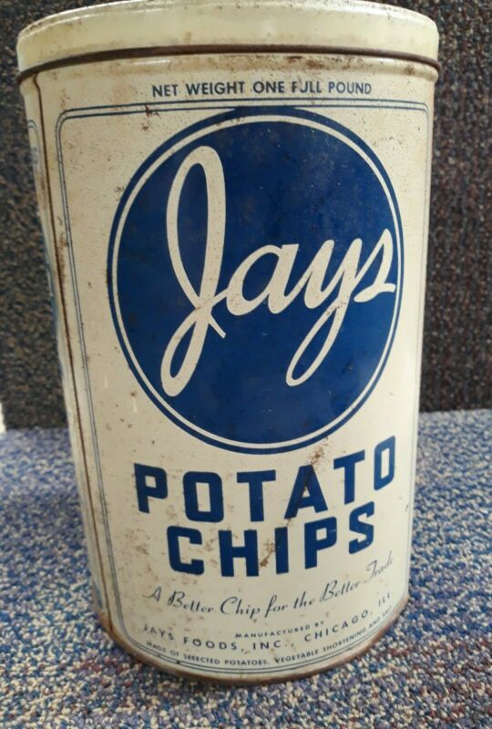 Title (ebay affiliate link): Vtg Pre-1973 Jays Potato Chip Tin Can Jays Special Foods Co Chicago IL Antique