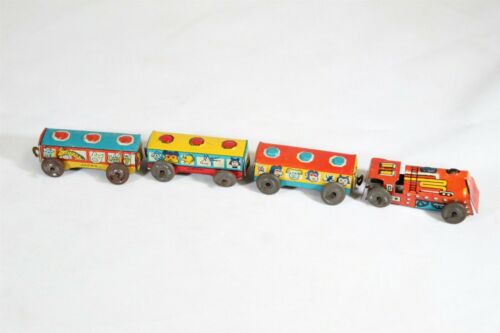 Retro 1940-50s Tin Litho Miniature 4pc Train Toy Eames Interest #12
