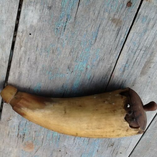 Title (ebay affiliate link): Early Primitive Powder Horn Great Wooden Cap Frontier