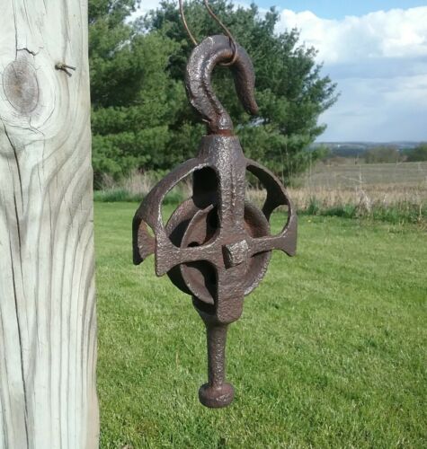 Title (ebay affiliate link): VINTAGE OLD CAST IRON BARN HAY TROLLEY CENTER DROP PULLEY