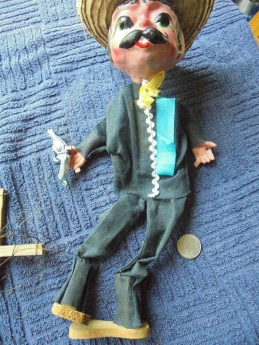 Title (ebay affiliate link): Vintage Composition Mexican Bandito Marionette with Gun & Sombrero Puppet
