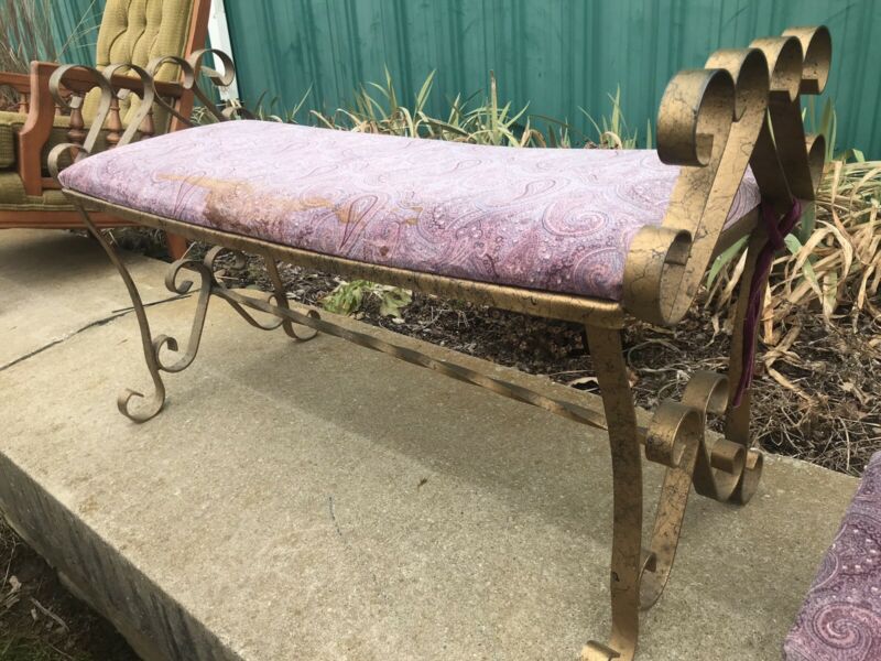 Title (ebay affiliate link): Mediterranean French Style Scrolling Iron Gold Upholstered Stool Decorator Bench