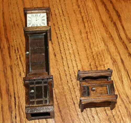 VTG DOLL HOUSE FURNITURE BROWN WOODEN GRANDFATHER CLOCK & MINI HUTCH/BREAKFRONT