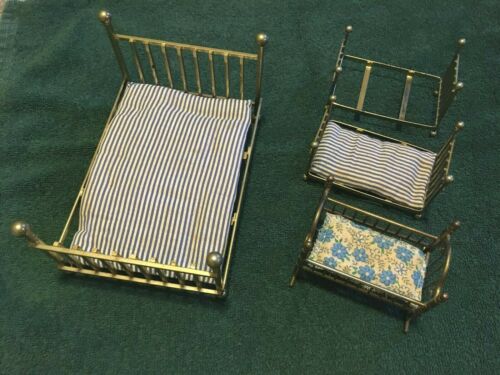 Dollhouse furniture - brass beds & cradle