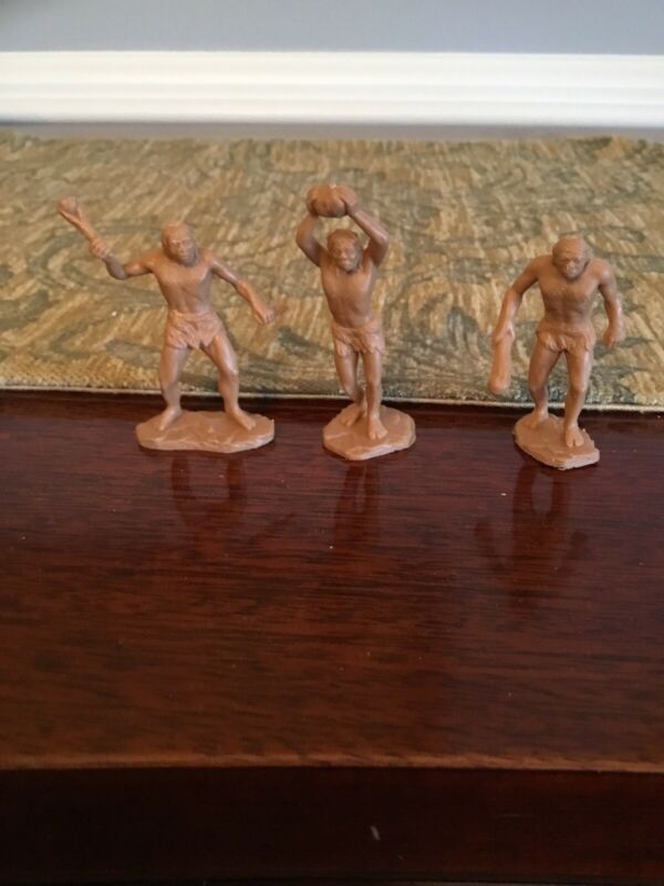 Set of 3 Marx Plastic Dinosaur Play Set Cavemen