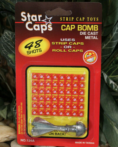 Title (ebay affiliate link): RARE VINTAGE NEW N PACKAGE STAR CAPS STRIP CAP TOYS DIE CAST STRIP CAP BOMB 124A