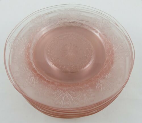 Title (ebay affiliate link): 11 Mac-Beth Evans Pink Depression Glass Plates FANFARE pattern