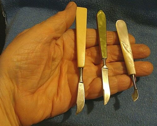 Title (ebay affiliate link): LOT 2 ANTIQUE BAKELITE HANDLED SCALPELS & 1 ANTIQUE PEARL HANDLE PEDICURE TOOL