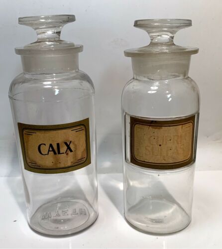 Title (ebay affiliate link): 2 Antique Apothecary Bottle Jar ....WYETH/Calx -8 1/2"+LUG/Culpri Sulfas -8"