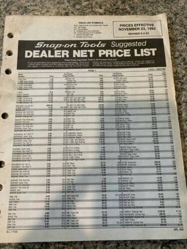 Title (ebay affiliate link): 1990 - Vintage Snap-on tools Dealer Net Price List catalog