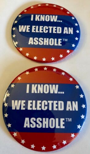 Title (ebay affiliate link): Pair of 3" Anti-Trump "I Know...We Elected An A..Hole" Political Campaign Pins