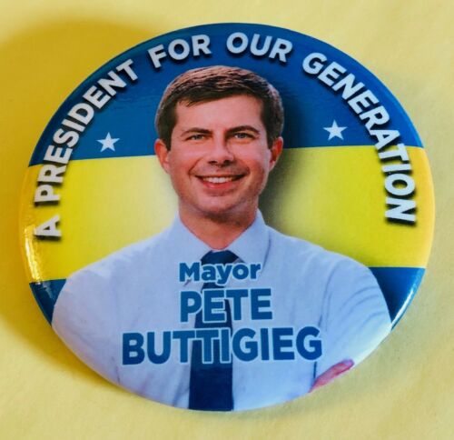 Title (ebay affiliate link): 2 1/4" Mayor Pete Buttigieg "A President For Our Generation" Campaign Pinback