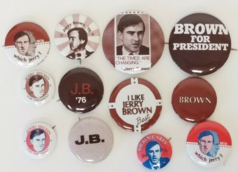 Title (ebay affiliate link): (12) 1976 Jerry Brown Presidential Campaign Pinback Buttons