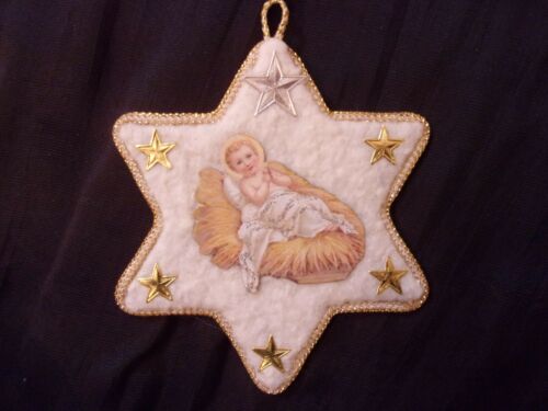 Antique VTG. Look Christmas Ornament, JESUS SCRAP, COTTON Batting, Handmade
