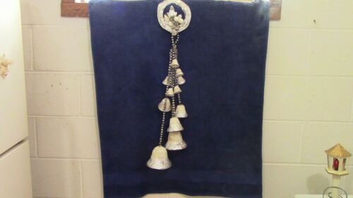 VINTAGE 1930''S PAPER MACHE & FOIL MERCURY GLASS BEAD HANGING CHRISTMAS BELLS 28"