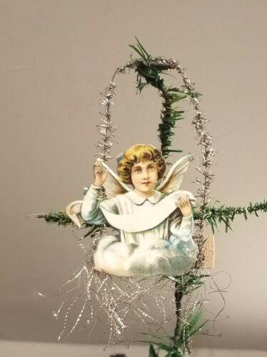 Title (ebay affiliate link): 1880s Angel on Cloud, holding Banner. Miniature Paper & Tinsel Xmas Ornament