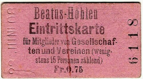 Entry ticket: Switzerland: Beatus-Hohlen, 1908