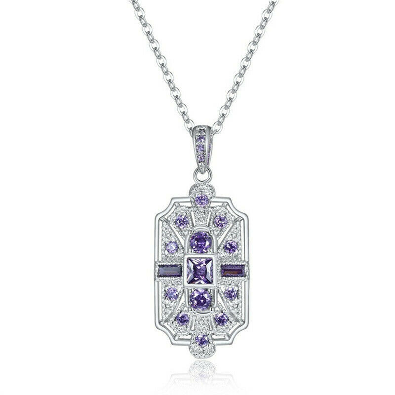 Title (ebay affiliate link): beautiful Jewelry 14k Yellow and Gold Amethyst Art Deco-Style Pendant Necklace