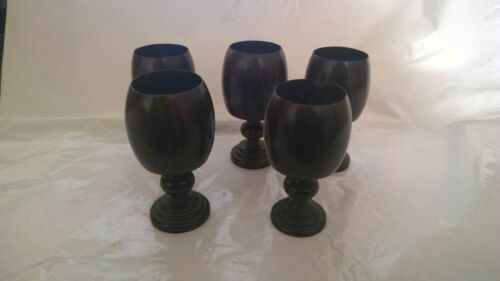 Title (ebay affiliate link): Lot of 5 Vintage Carved Wooden Pedestal Goblet Wood Wine Glasses Set