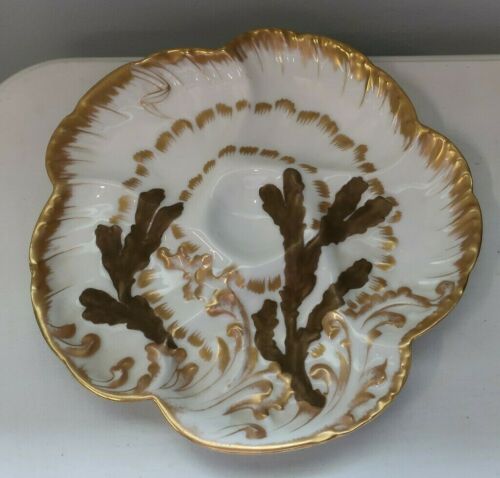 Antique Limoges CFH/GDM Oyster Plate 8 3/4" White/Gold