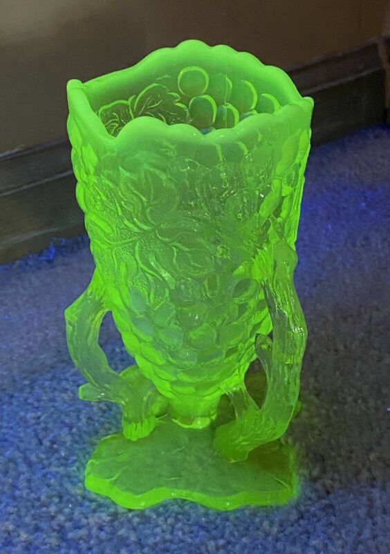 Title (ebay affiliate link): Antique Vaseline Opalescent Spooner~Grape Leaf Foot, Grapes & Leaves Pattern