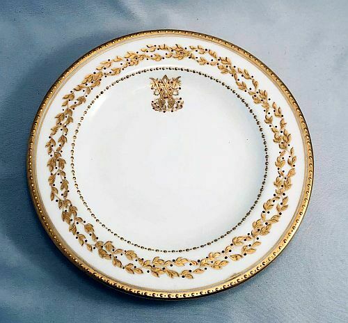 Copeland''s Gilded & Jeweled Bread Plate Gold Leaves Red Beads "W" Mono Collamore