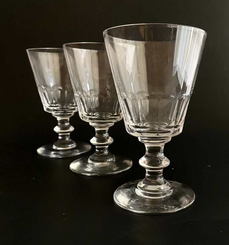 Antique Petal Panel Cut Georgian Wine Water Goblet Glasses