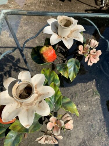 Vintage Shabby Chic Pair Italian Tole Candleholders Crabapples