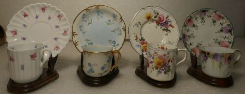ANTIQUE TEA CUPS PORCELAIN W/ WOODEN STANDS SPODE ROYAL CROWN DERBY