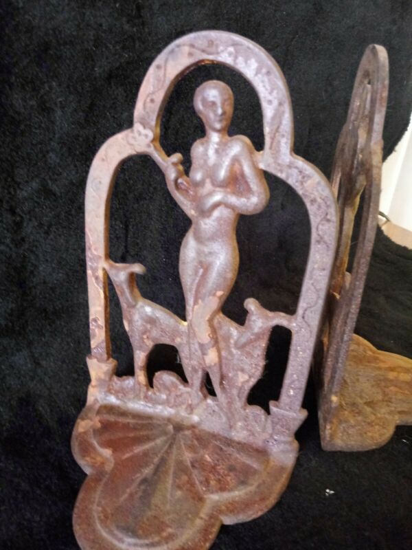 Metal Deco Figural Lady And Dogs Book Ends