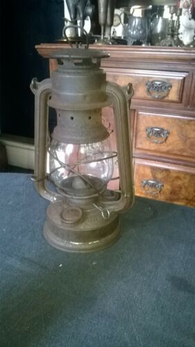 ANTIQUE OIL LAMP/ORIGINAL GLASS/WESTERN GERMANY/NIER FEUER HAND/275 BABY.RUSTIC