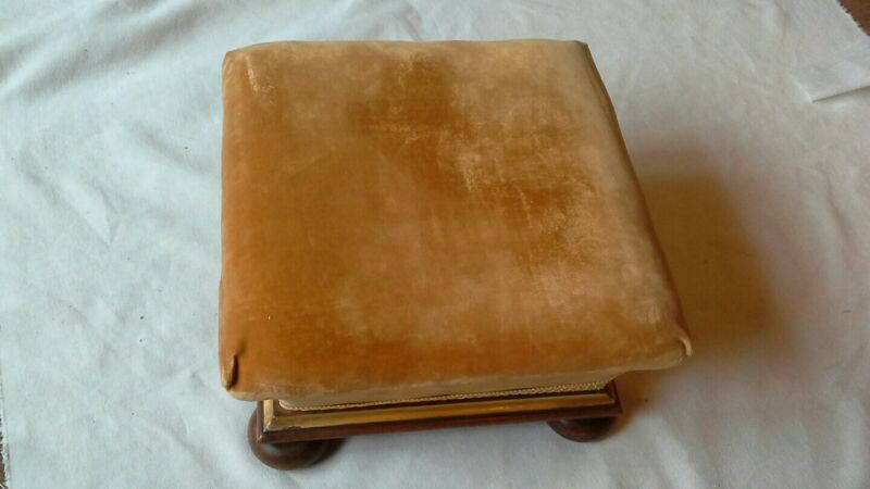 Title (ebay affiliate link): Small Vintage Wooden 12" Square Foot Stool Gold Velour
