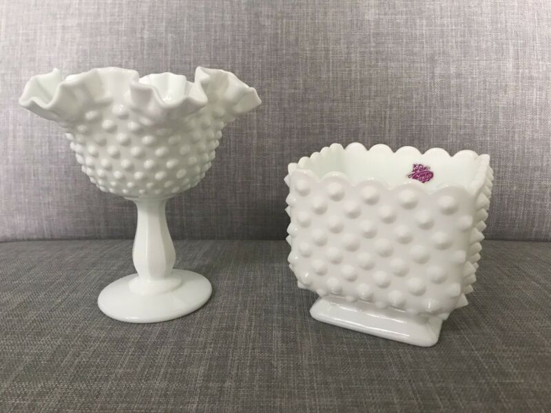 Vintage FENTON White Milk Glass- Set Of 2
