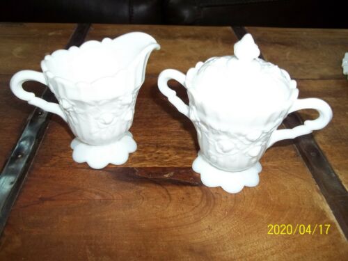 Title (ebay affiliate link): Fenton Milk Glass Creamer And Sugar Bowl With Lid Cabbage Rose Pattern