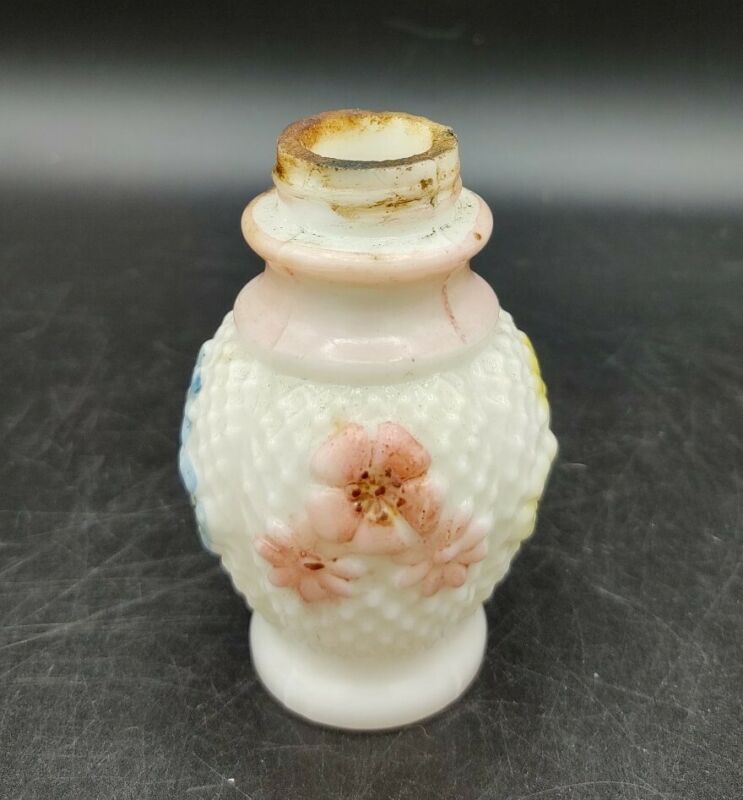 Atq Milk Glass Cosmos Daisy Light Pink Floral Lattice Single Salt Shaker AS IS