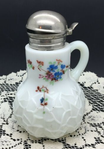 VICTORIAN SYRUP PITCHER DITHRIDGE & CO MILK GLASS ALBA BLOSSOMS 1894