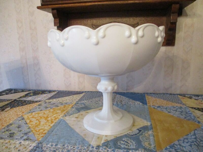 Title (ebay affiliate link): Vintage White Milk Glass Fruit Bowl with Pedestal. Great condition.