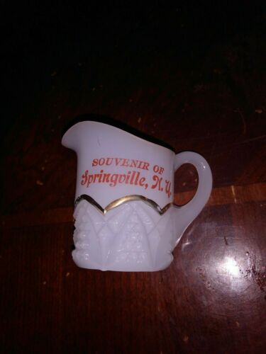 White Milk Glass Mini Pitcher Souvenir of Springville NY