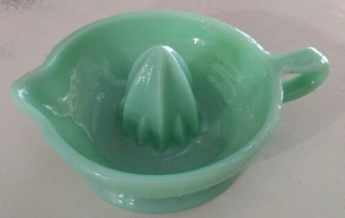 Title (ebay affiliate link): VINTAGE JADEITE GREEN MILK GLASS JUICER WITH POUR SPOUT AND HANDLE