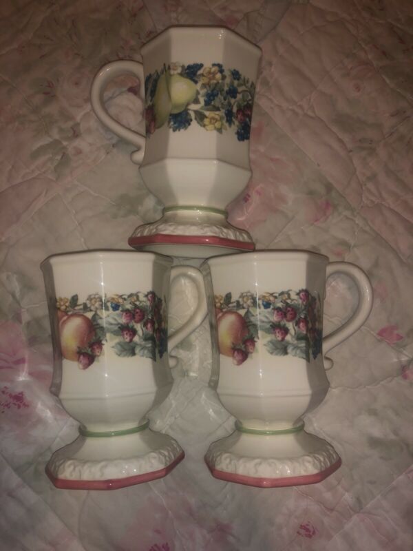 Title (ebay affiliate link): Avon SWEET COUNTRY HARVEST Set of 3 Pedestal Coffee Tea Mugs Fruit