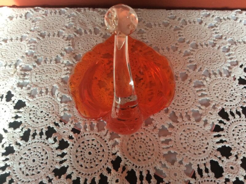 Vintage Swan Art Glass Candy Dish. Clear and orange