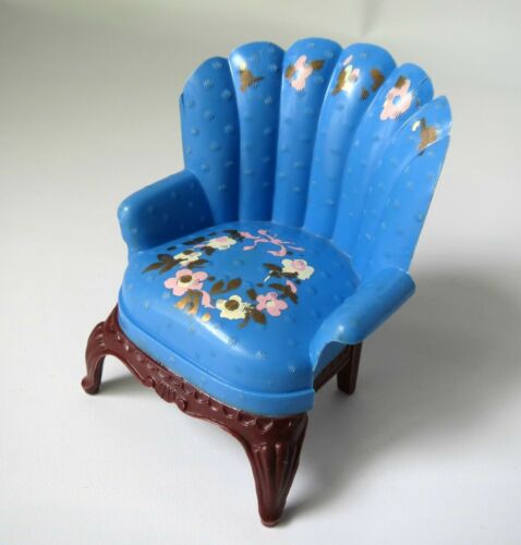 Title (ebay affiliate link): Vintage Dollhouse Miniature Renwal Lot Chair 77 Stenciled Blue Radio Clock Table