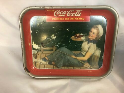 Title (ebay affiliate link): Vintage 1940''s Coca-Cola Sailor Girl Fishing Pin-up Serving Tray