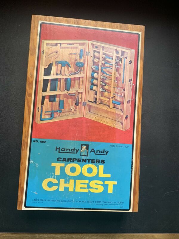 Title (ebay affiliate link): Vintage Handy Andy Tool Set #602 in Wooden Box/Original Label/ TOOL SET