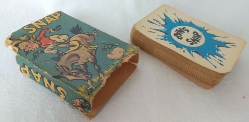 Vintage SNAP playing cards. Wild West Cartoon with Billy The Kid, damaged box.
