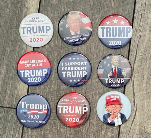 Title (ebay affiliate link): Set of 9 Donald Trump For President 2020 Keep America Great Buttons Pins Pinback