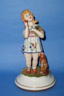 CAPODIMONTE FIGURINE YOUNG GIRL WITH FLOWERS SIGNED