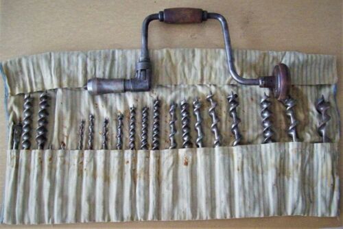 antique Miller''s Falls no.1321(12")auger brace/variety of auger bits-made in USA