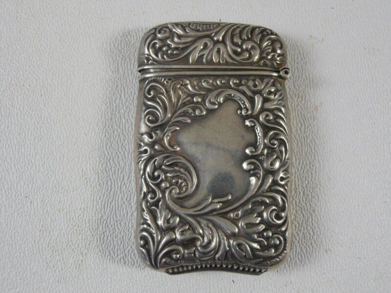 Antique Art Nouveau Sterling Silver Match Safe Vesta Case Repousse Floral B